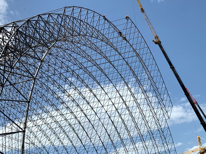 (2)网架加工前应对现场尺寸进行复测,确认无误后方可进行加工、安装;网架制作、运输、安装应遵守《空间网格结构技术规程》JGJ7-2010、《钢网架北流螺栓球节点》JG/T 10-2009、《钢网架北流螺栓球节点用高强度螺栓》 GB/T 16939-2016、《北流钢结构北流工程北流施工规范》 GB50755-2012、《北流钢结构北流工程施工质量验收标准》 GB50205-2020。